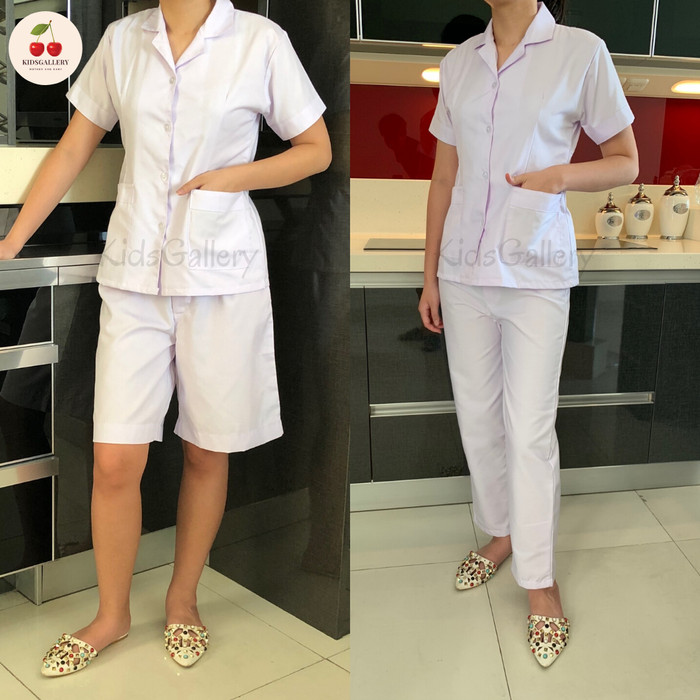 BAJU SERAGAM SUSTER/ BAJU BABY SITTER/ BAJU NANNY (PUTIH POLOS) - S, KULOT
