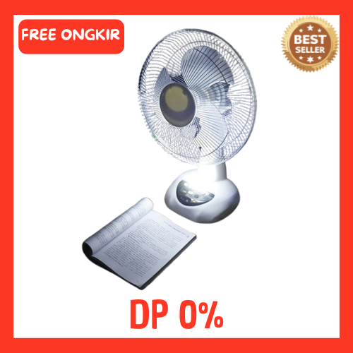 SR - Kipas Tenaga Surya 12"–16" + Panel Surya, Bola Lampu & 2 LED – Meja & Lantai
