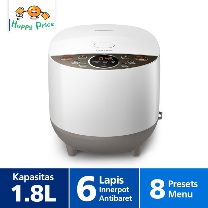 PHILIPS RICE COOKER HD4515 DIGITAL 1.8L PENANAK NASI HD4515 - PUTIH, TANPA BUBBLE