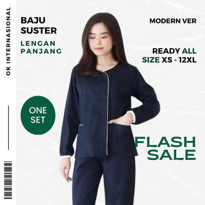 BAJU SUSTER MODERN LENGAN PANJANG JUMBO SETELAN/ SERAGAM NANNY MURAH - XS, TULIS DINOTE