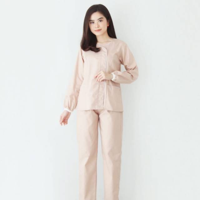 BAJU SERAGAM SUSTER LENGAN PANJANG ZOE LATTE / SERAGAM BABY SITTER - S