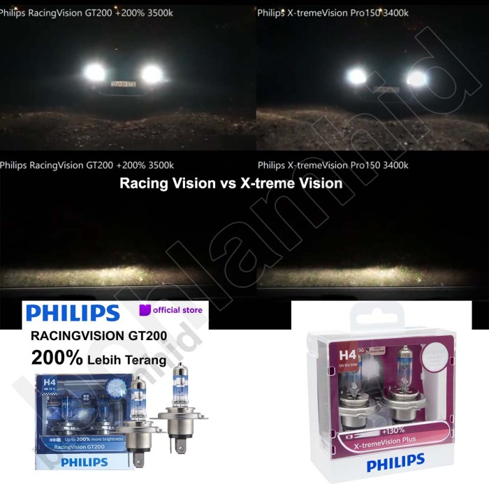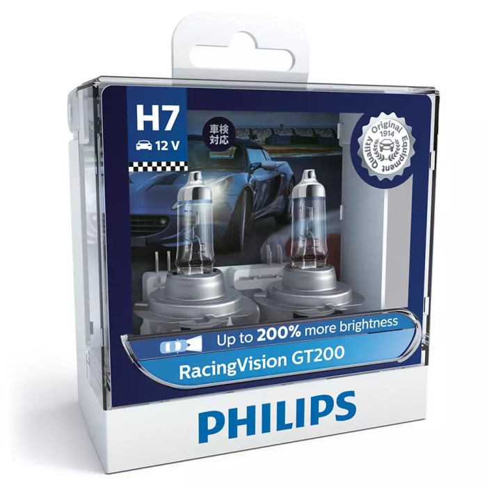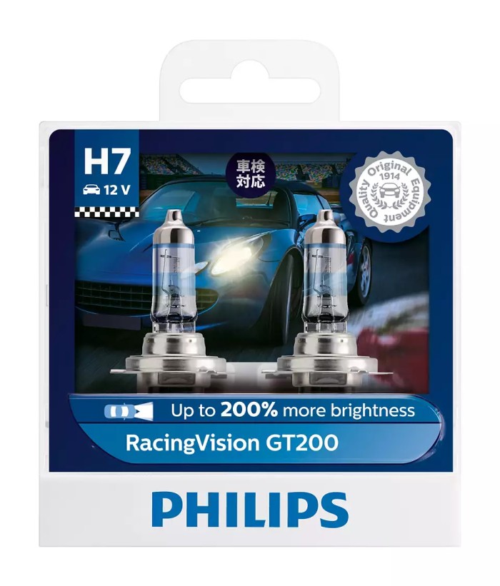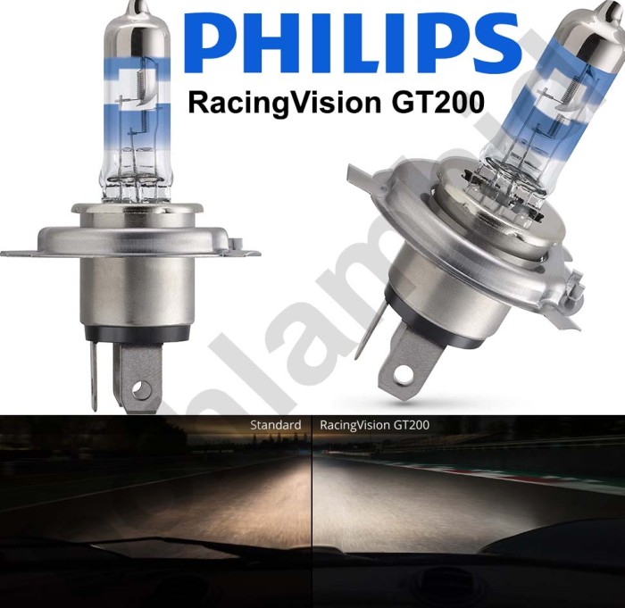 LAMPU MOBIL H4 PHILIPS RACINGVISION GT200 RACING VISION MADE IN POLAND - H7