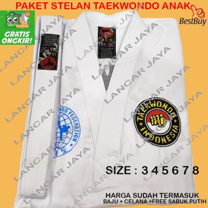 BAJU TAEKWONDO 1 STEL ANAK - SABUK PUTIH - NO 6
