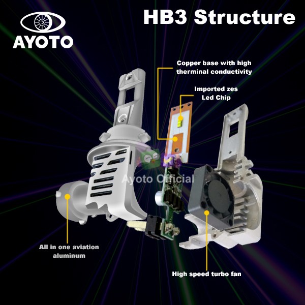 LAMPU MOBIL LED AYOTO HB3 6000K, 35W+35W, 10.000 LUMENS, PNP - 1 PASANG, A1-HB3 PUTIH