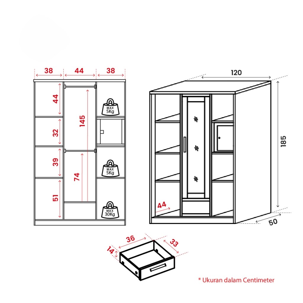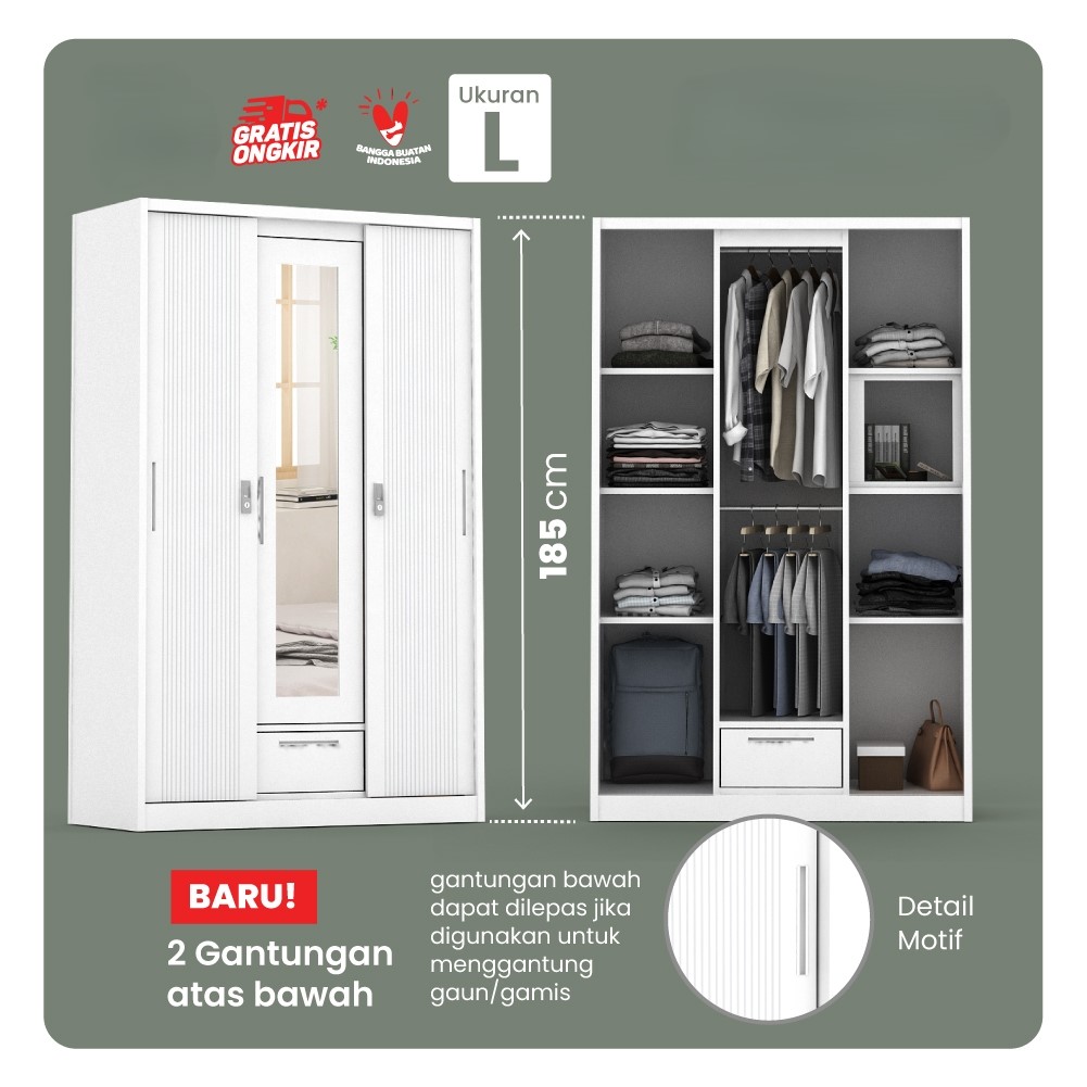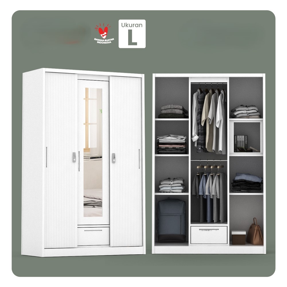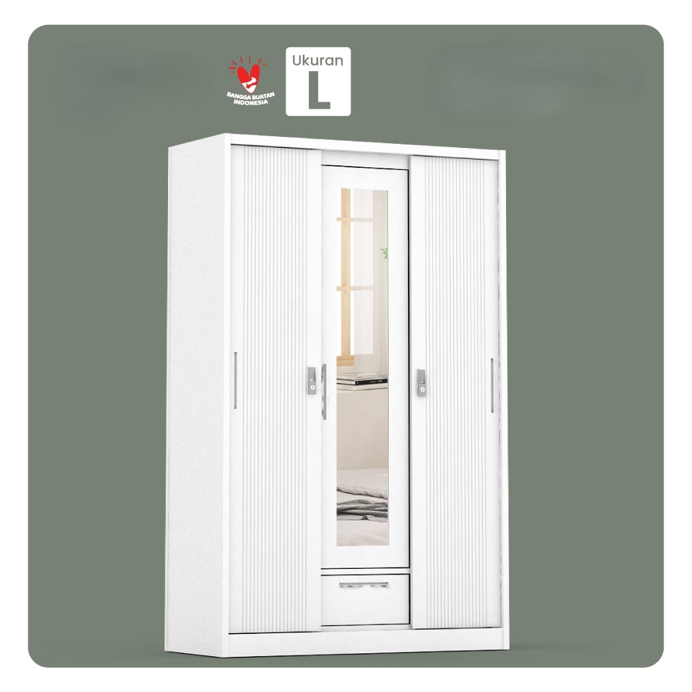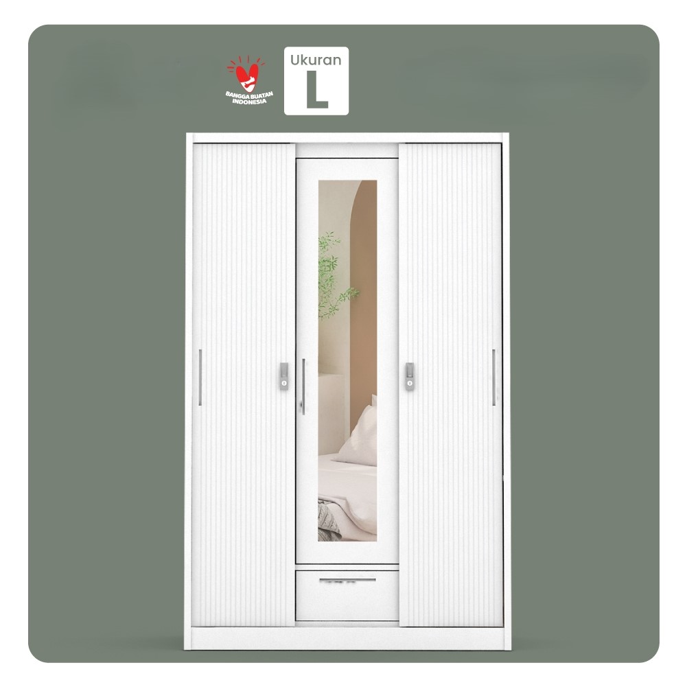 LINIO 3A SSL MWD Lemari Pakaian Besi 3 Pintu Sliding / Pintu Geser