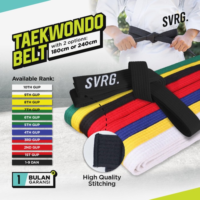 SVRG. BELT TAEKWONDO - SABUK TAEKWONDO - SABUK BELA DIRI TAEKWONDO - YELLOW, 180 CM