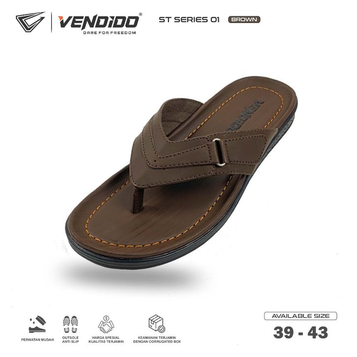 Vendido Sandal Pria Kulit Premium Anti Slip St 01 Sandals Cowok Terbaru Casual Best Seller