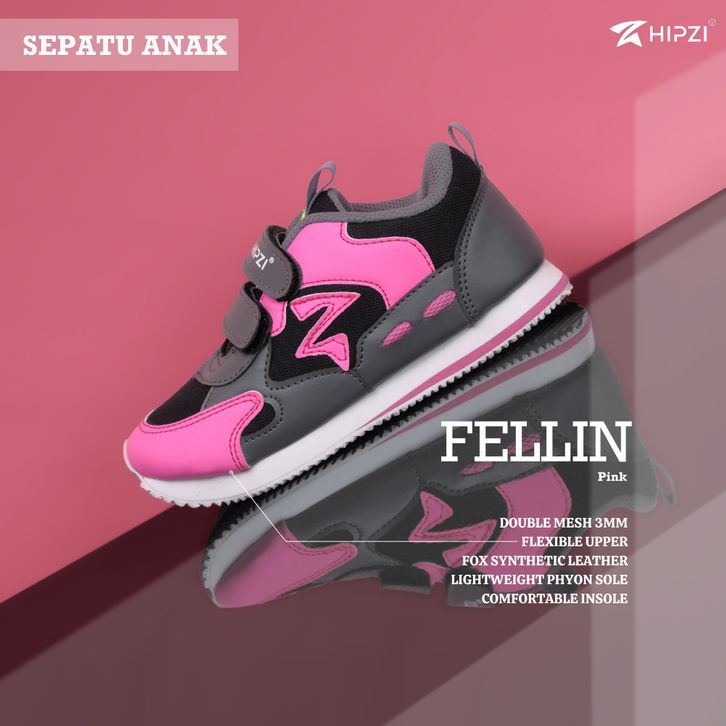 Hipzi - Sepatu Anak Felin Kids Warna Pink Size 26-35 Sekolah Laki Laki Perempuan Olahraga Terbaru