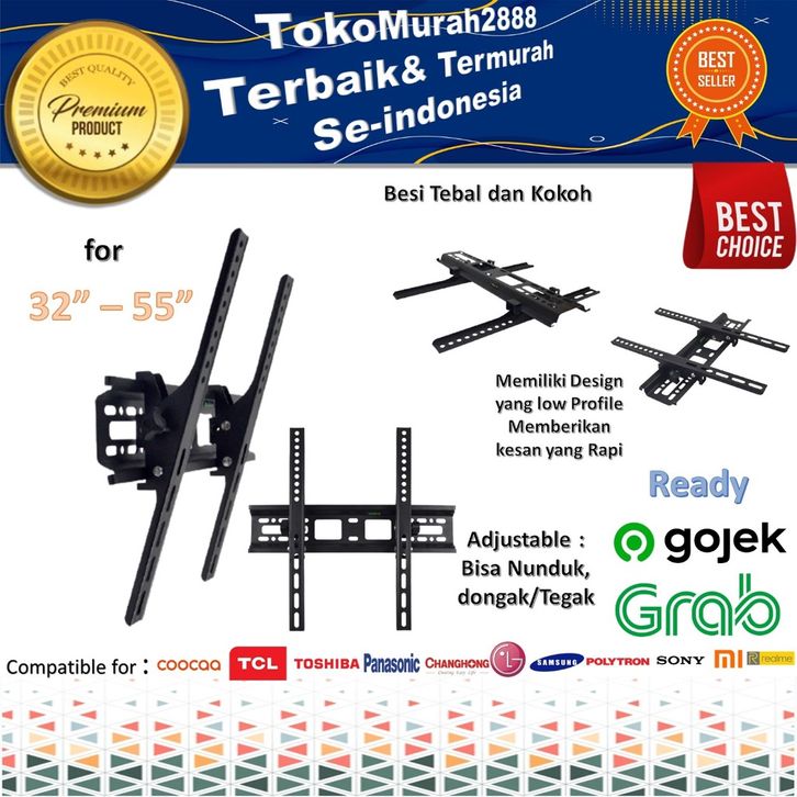 Bracket TV 32 Inch - 70 Inch Cocok Semua Merk Tv Tebal 2 Arah Nunduk Dangak Universal Breket Briket Braket Bracket TV