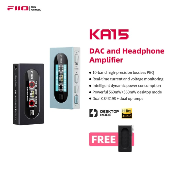 FIIO JADE AUDIO KA15 / KA-15 / KA 15 PORTABLE DAC / AMP DUAL DACS + DUAL OP-AMPS CHIP SUPPORTS HI-RES - BLUE