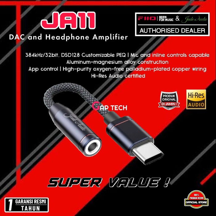 FIIO JADE AUDIO JA11 / JA-11 / JA 11 DONGLE DAC AND HEADPHONE AMPLIFIER USB TYPE C TO 3.5MM / DAC AMP - HITAM