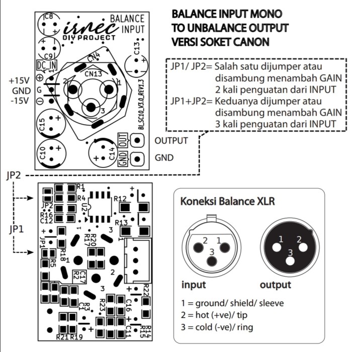 KIT BALANCE INPUT MONO TO UNBALANCE OUTPUT VERSI SOCKET CANON - TANPA SOKET
