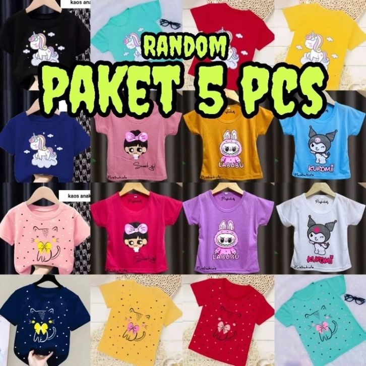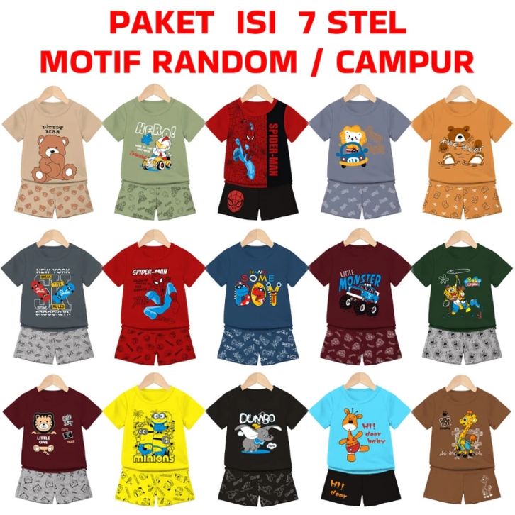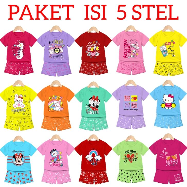Paket 7 Stel Setelan Baju Celana Anak Perempuan Laki Laki Cowok Cewek Usia 1 2 3 4 5 6 Tahun Motif Sablon Murah