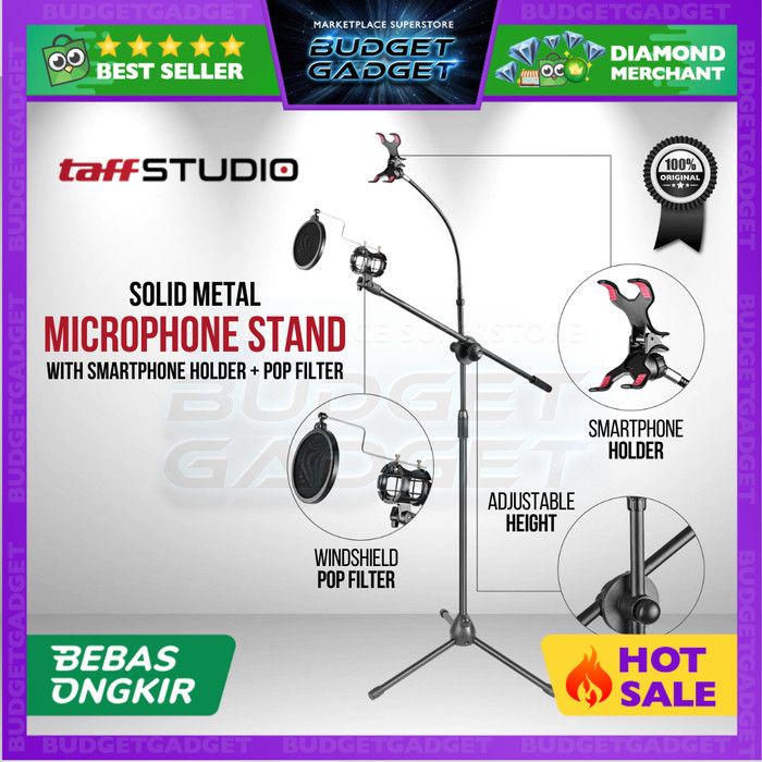 TaffSTUDIO Stand Tiang Mic Microphone & Smartphone Holder 360 Degree