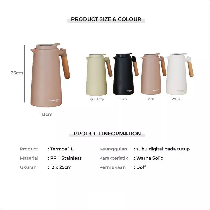 Youware - Kiyomi Termos Air Panas Dengan Temperature Digital 1000ml 1 Liter