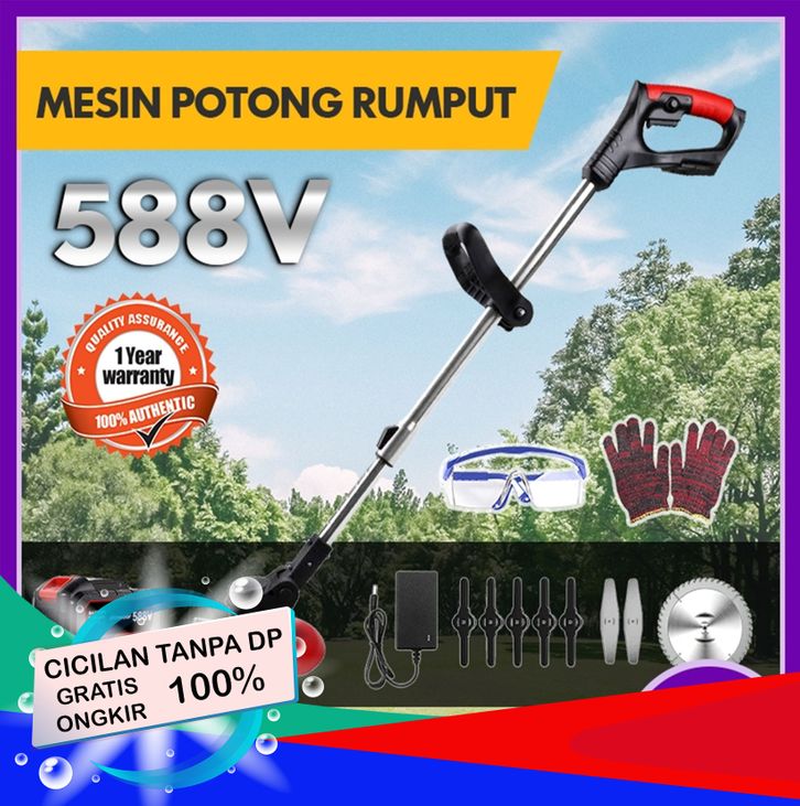 FREE ONGKIR IRONHOOF 588V/88V Mesin Potong Rumput Pemotong Rumput Listrik Pemangkas Rumput dengan Baterai Li-ion