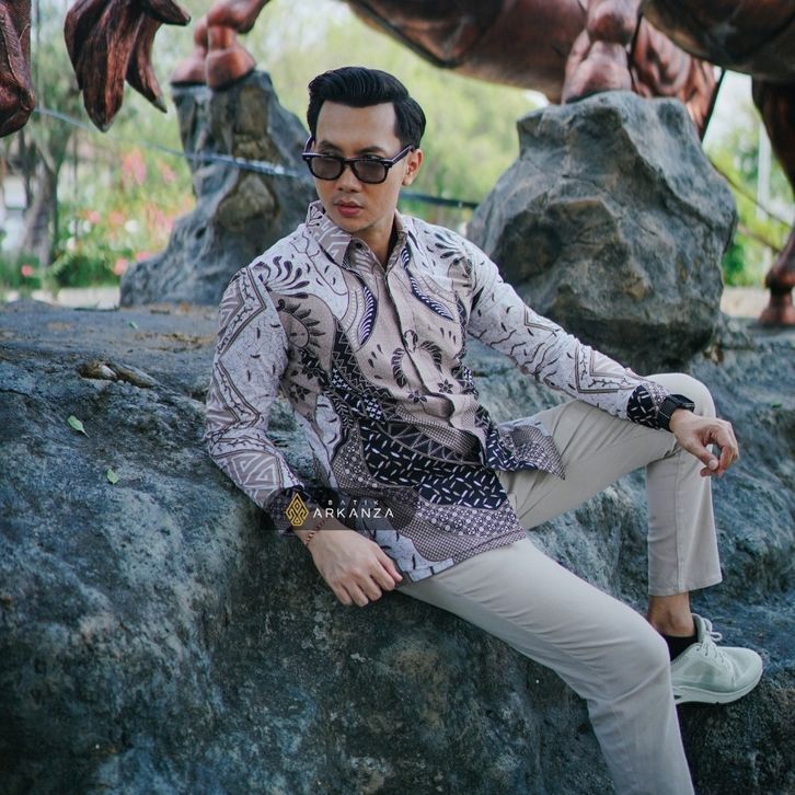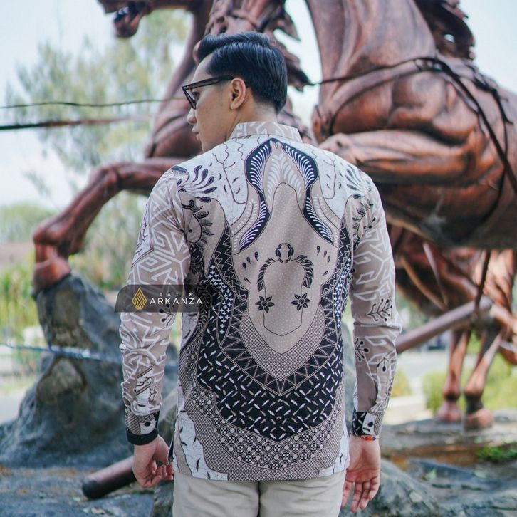 BATIK ARKANZA Motif Dewanagari Awu Kemeja Batik Pria Lengan Panjang Slimfit Premium Bahan Katun Lapis Furing