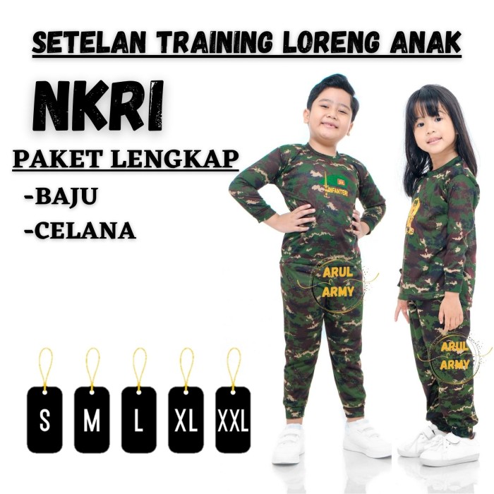 KAOS BAJU SETELAN TRAINING LORENG ANAK TNI TENTARA ANAK POLISI ANAK - MALVINAS, S