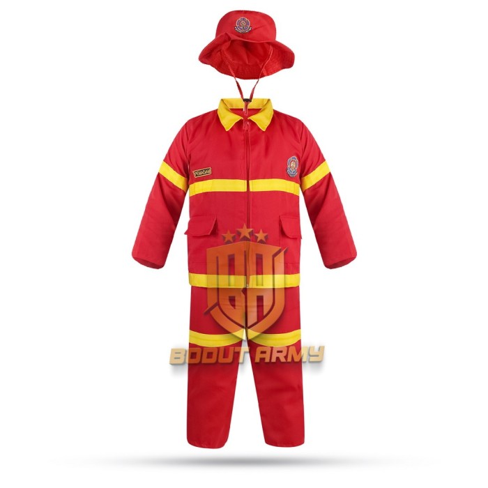 SERAGAM BAJU KOSTUM PROFESI SETELAN PEMADAM KEBAKARAN ANAK - MERAH, L
