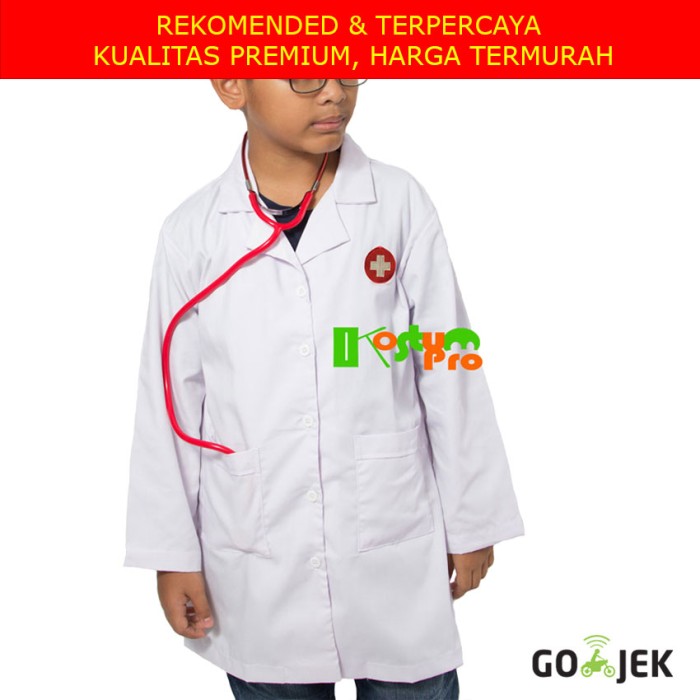 KOSTUM JAS DOKTER + STETOSKOP UK 10 (10-11 TAHUN) TANGAN PANJANG - STETOSKOP HIJAU