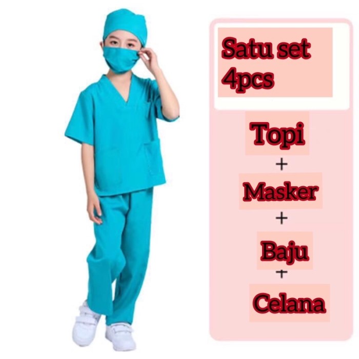 BAJU DOKTER ANAK - SERAGAM DOKTER ANAK - BAJU DOKTER BEDAH KOSTUM ANAK - SETELAN PINK M