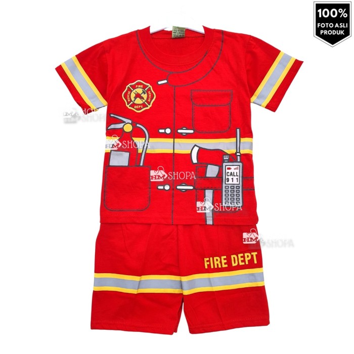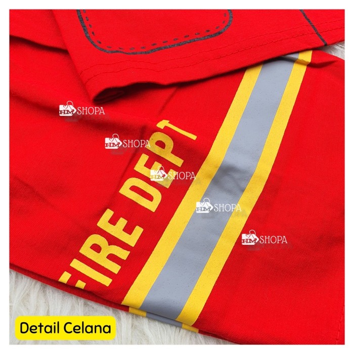 HM BAJU SETELAN KAOS ANAK LAKI PROFESI PEMADAM KEBAKARAN 1-10 THN - SIZE 4 ±2TH