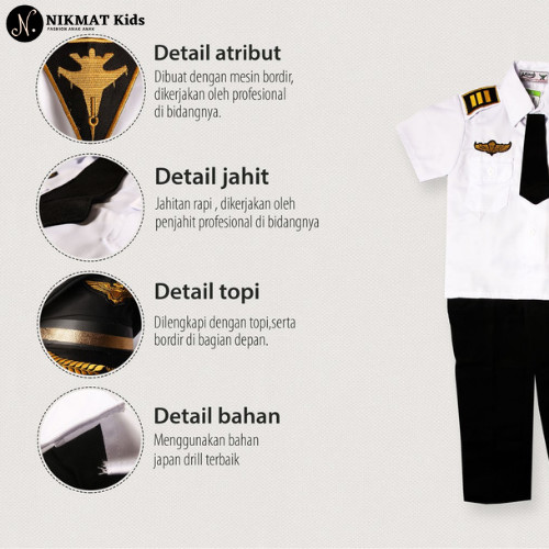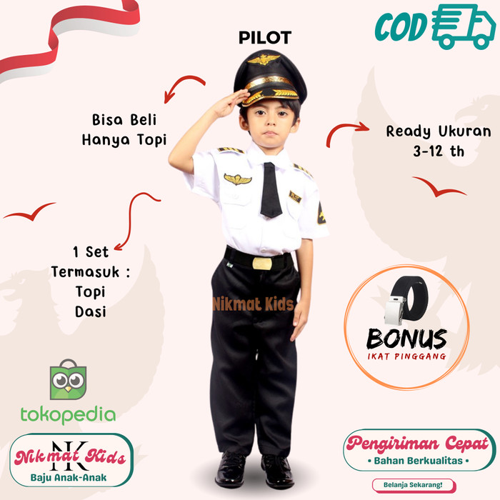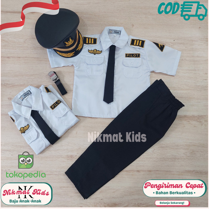 KOSTUM PILOT ANAK SETELAN PROFESI STELAN KARNAVAL PAWAI TK SD PESAWAT - NO.1 (3-4TAHUN)