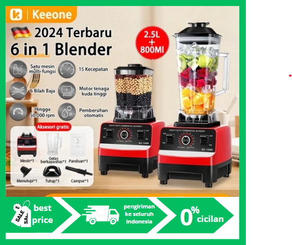 Keeone Blender 2.5L+800ML 220V 6 Pisau Blender Buah Multifungsi Chopper Juicer Bahan PC Food Grade Mesin Blender Mixer l