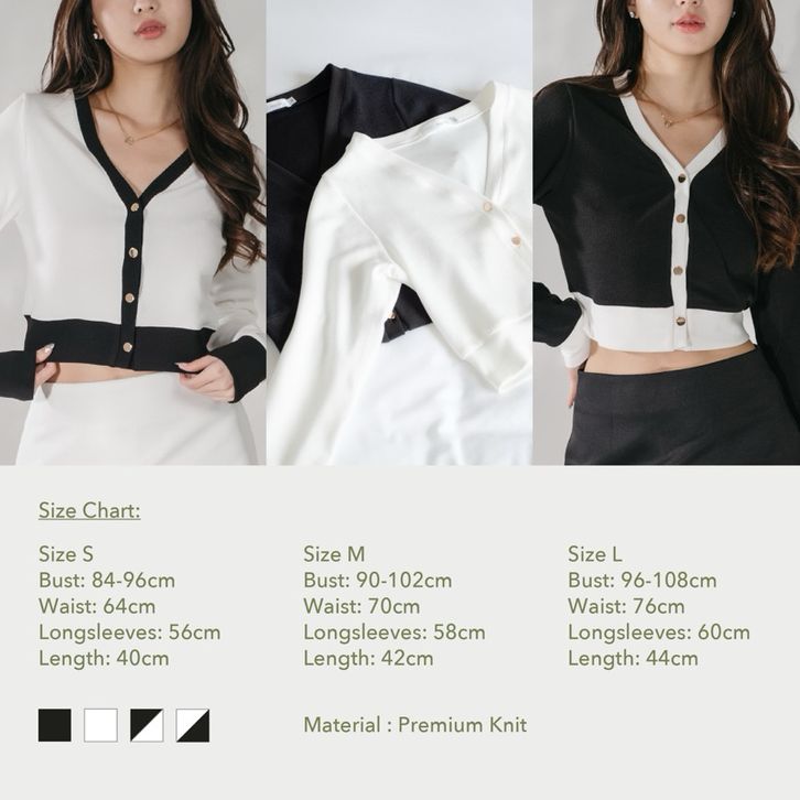 Libra Cropped Cardigan -- Ocha Wear X Valerie Pola | Premium Knit Wear | Buttons | Outer Wanita