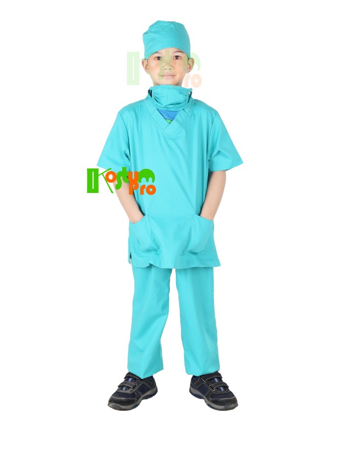 KOSTUM DOKTER BEDAH UK 4 (4-5 TAHUN) UNTUK ANAK HIJAU TOSCA - STETOSKOP MERAH