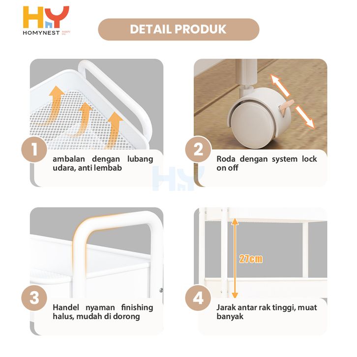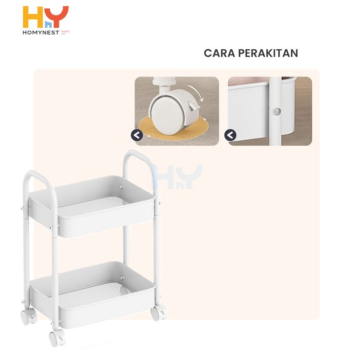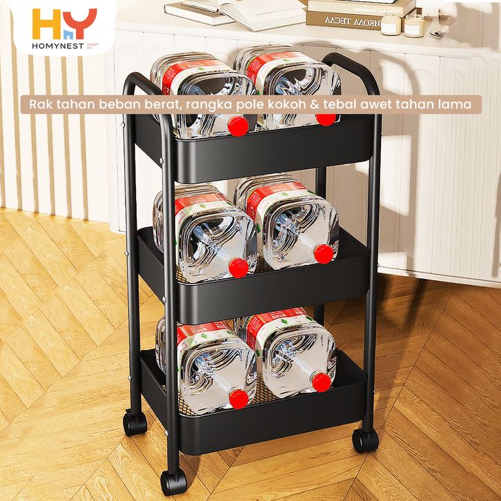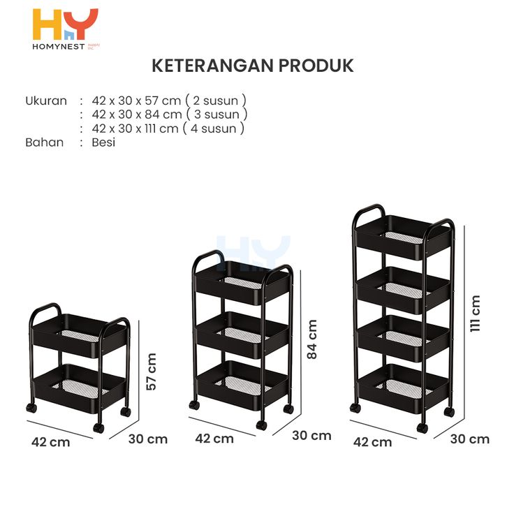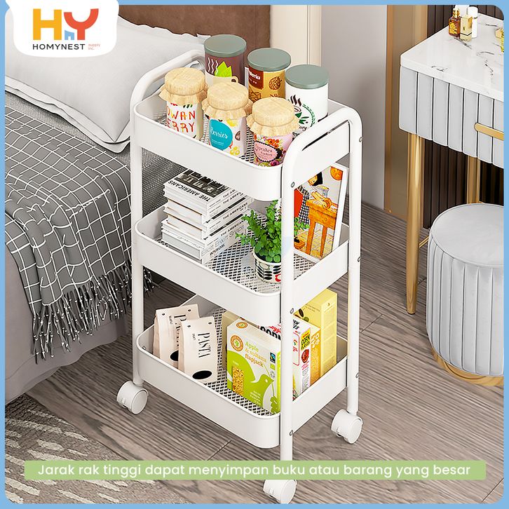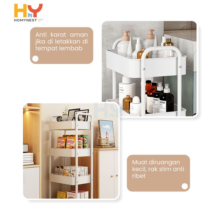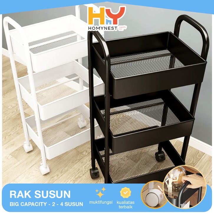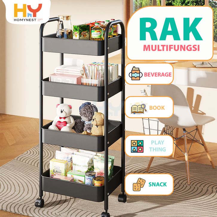 HOMYNEST Rak Troli Susun Roda Serbaguna Untuk Dapur Kamar Mandi Rak Kosmetik Bahan Besi Kokoh 4 Tingkat Berkualitas