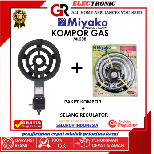 Kompor Gas Cor Komersil Miyako ML 288 + Selang Gas Regulator Miyako Low Pressure Tekanan Rendah Kompor Mawar 1 Tungku