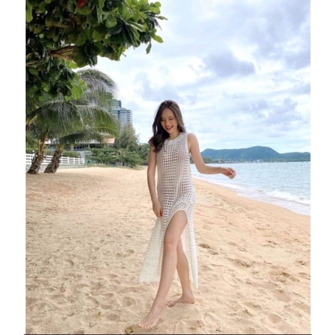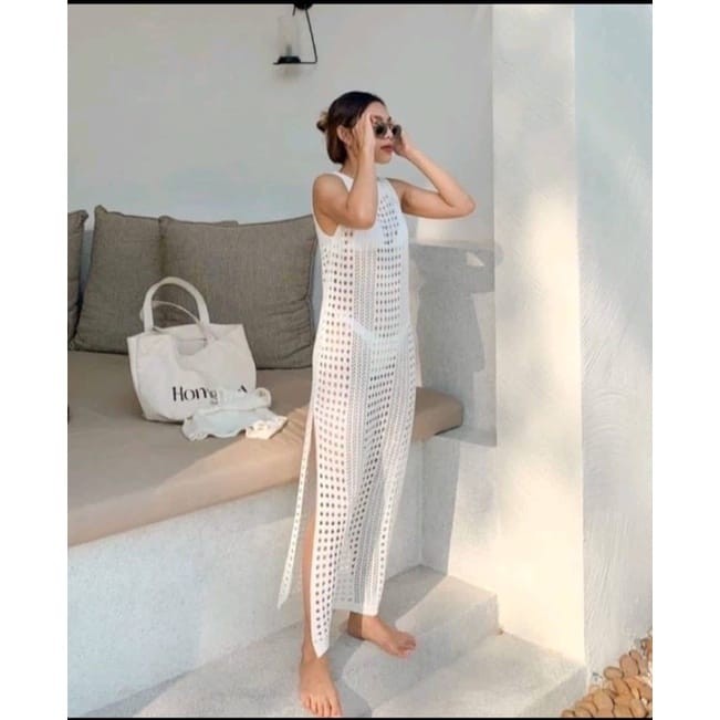 ARA OUTER / COVER UP BIKINI WANITA / BIKINI OUTER RAJUT / OUTERWEAR - KHAKI