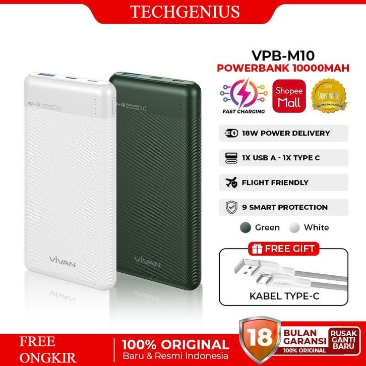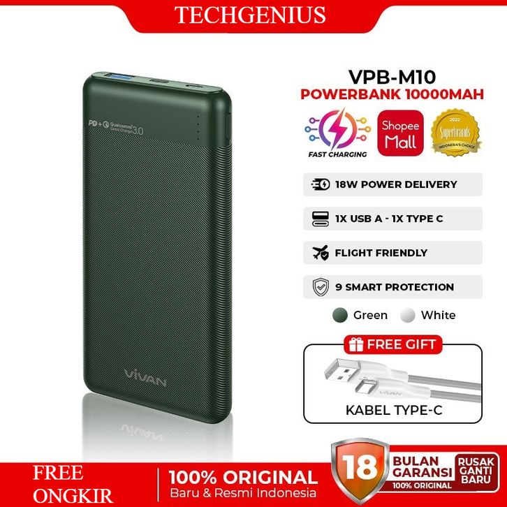 [Star] Powerbank VIVAN 10.000mah VPB-M10 18W Fast Charging Fast Charging Real Capacity Garansi 18 Bulan