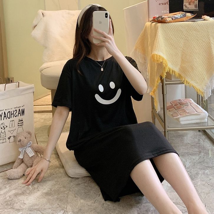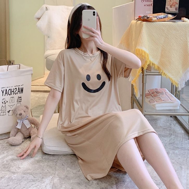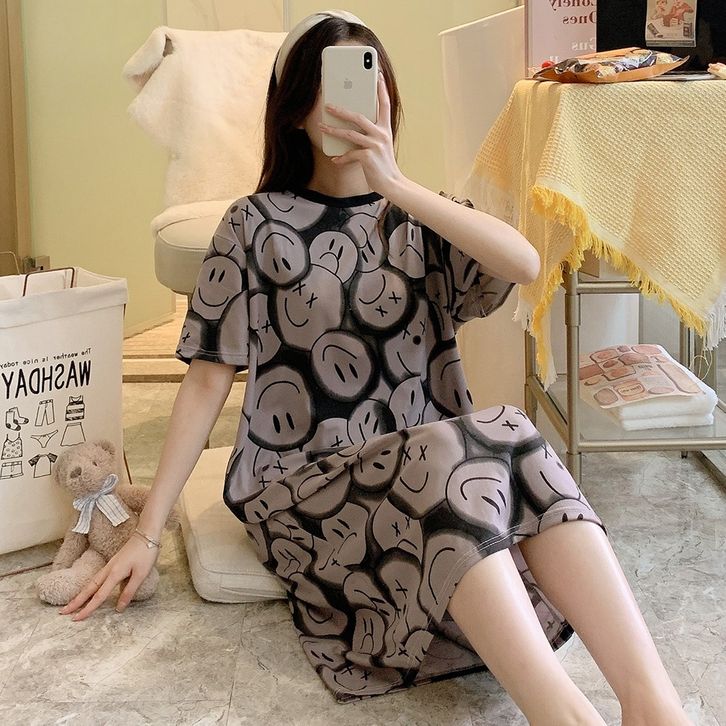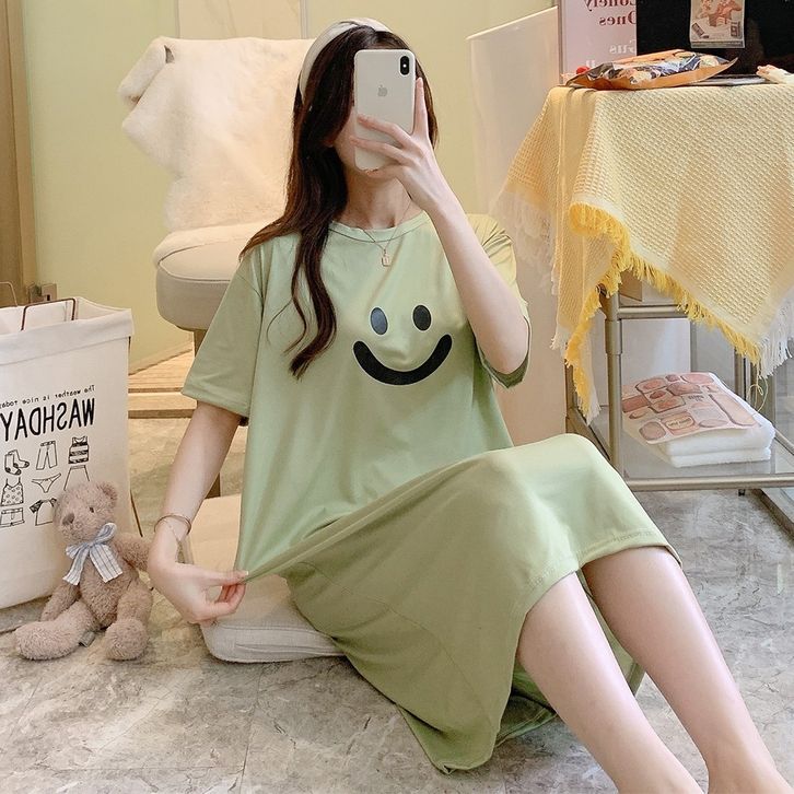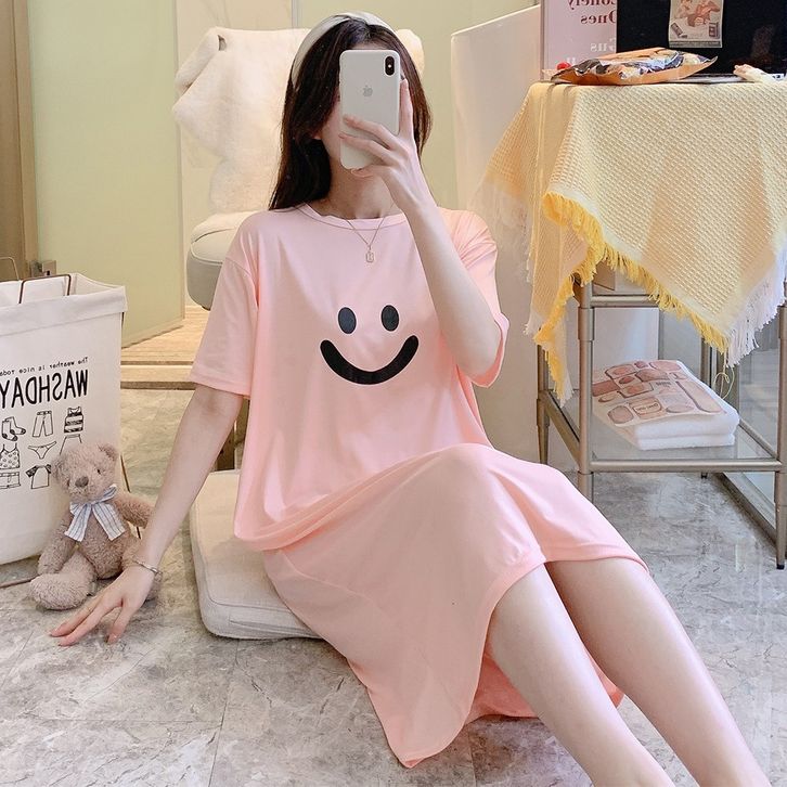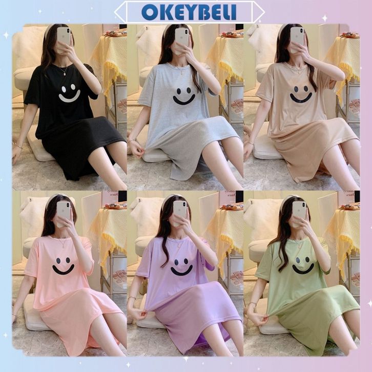•OKEY BELI•BJ1605 Baju Tidur Wanita Dress Cewek Daster Panjang Tangan Pendek Bahan Kaos Tebal Nyaman