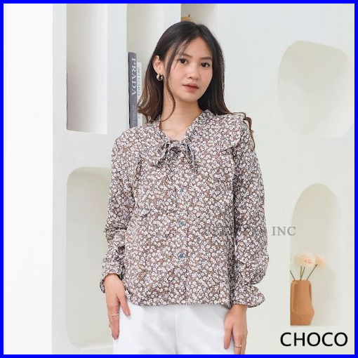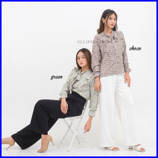 Ellipsesinc Blouse Kantor Atasan Casual Wanita Atasan Korea Atasan Bunga Wanita Elise Floral Top