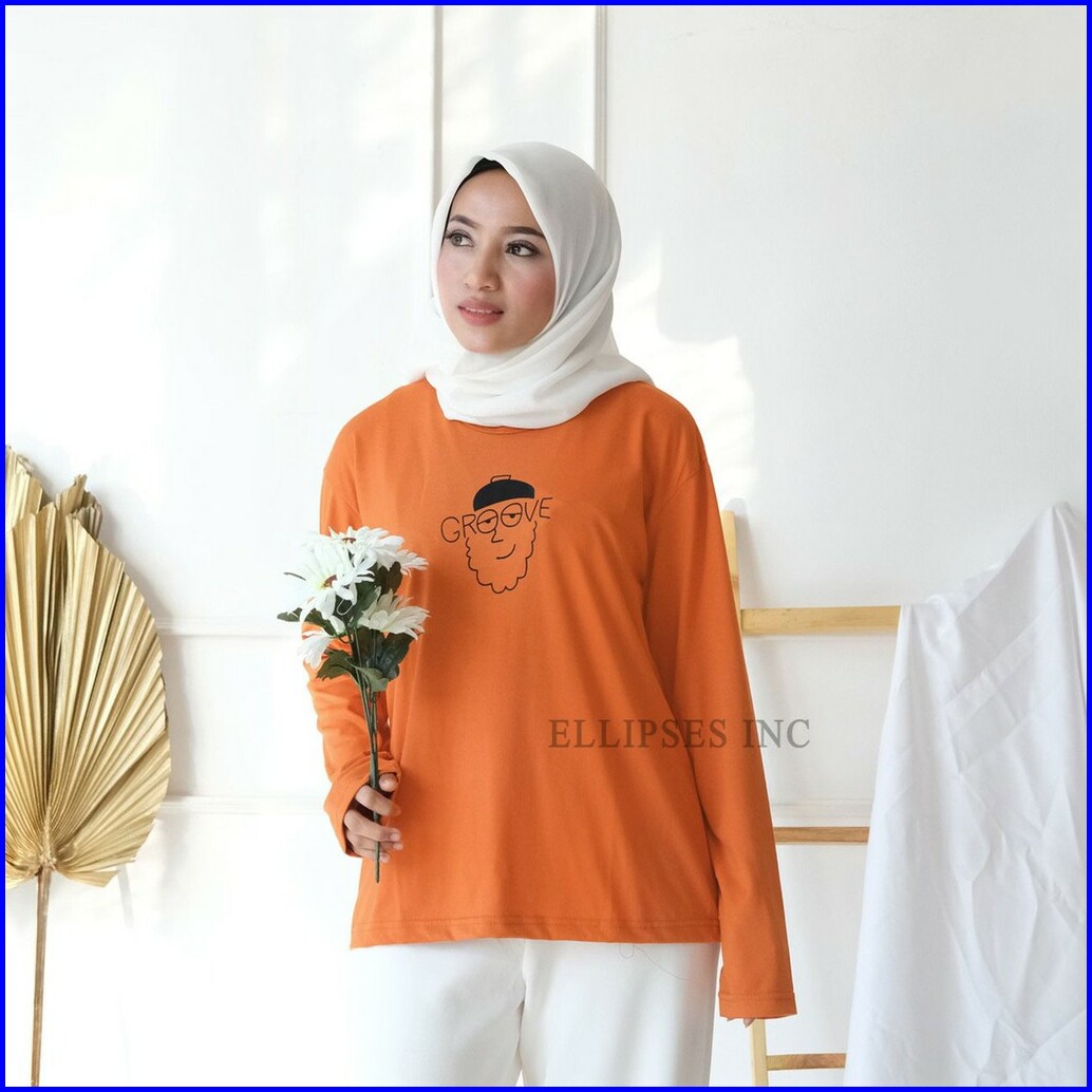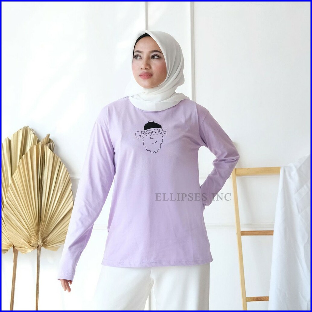 Ellipsesinc Kaos Oversize Wanita Lengan Panjang Groove