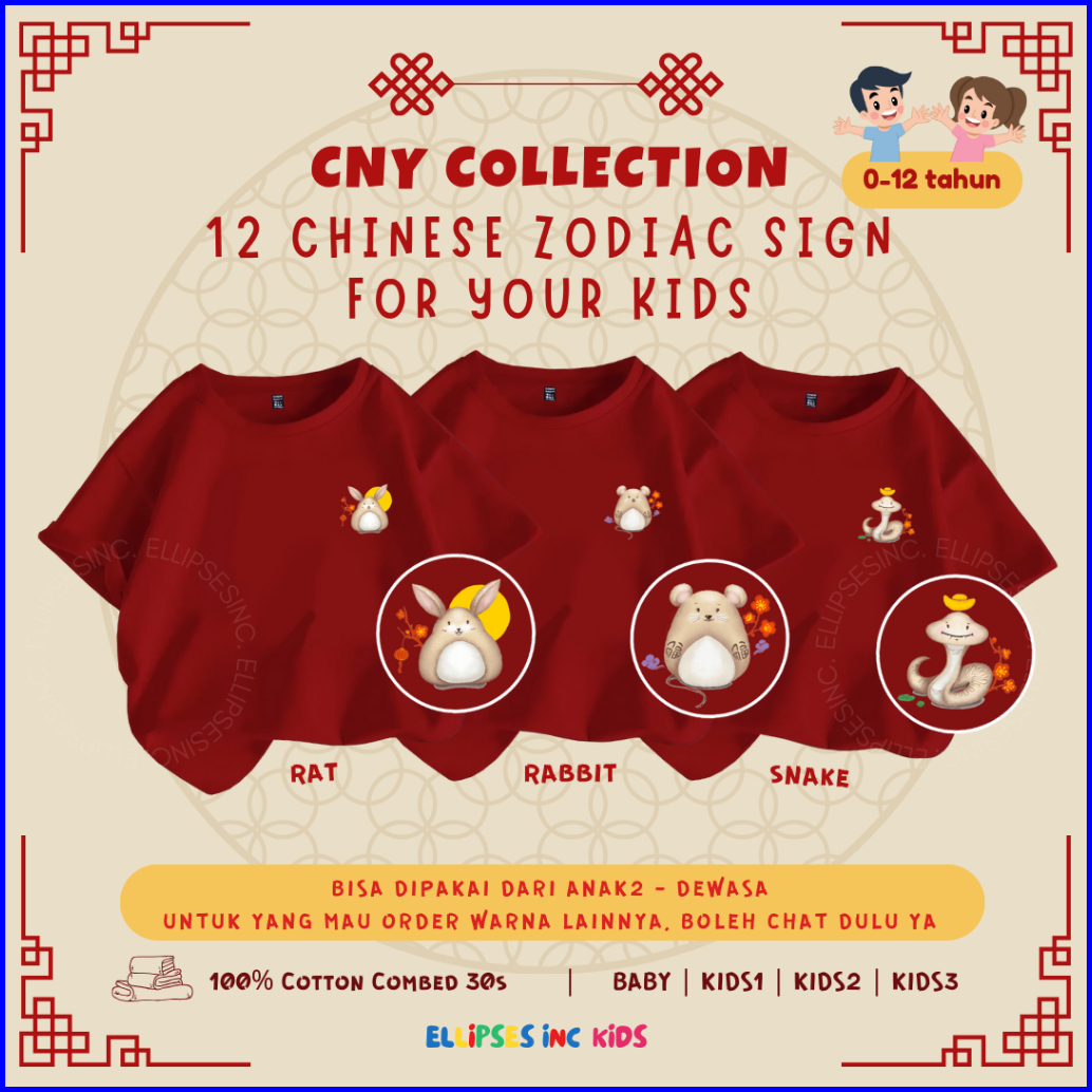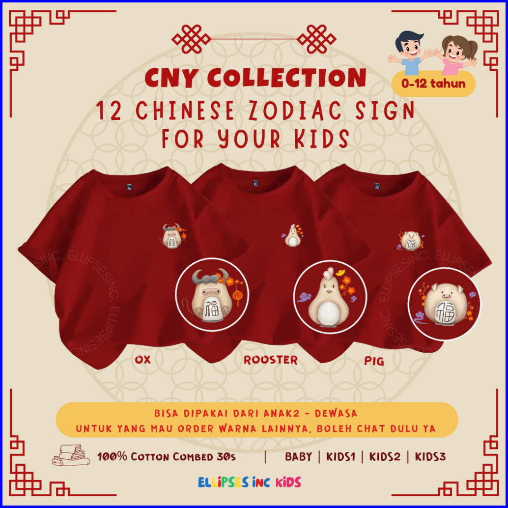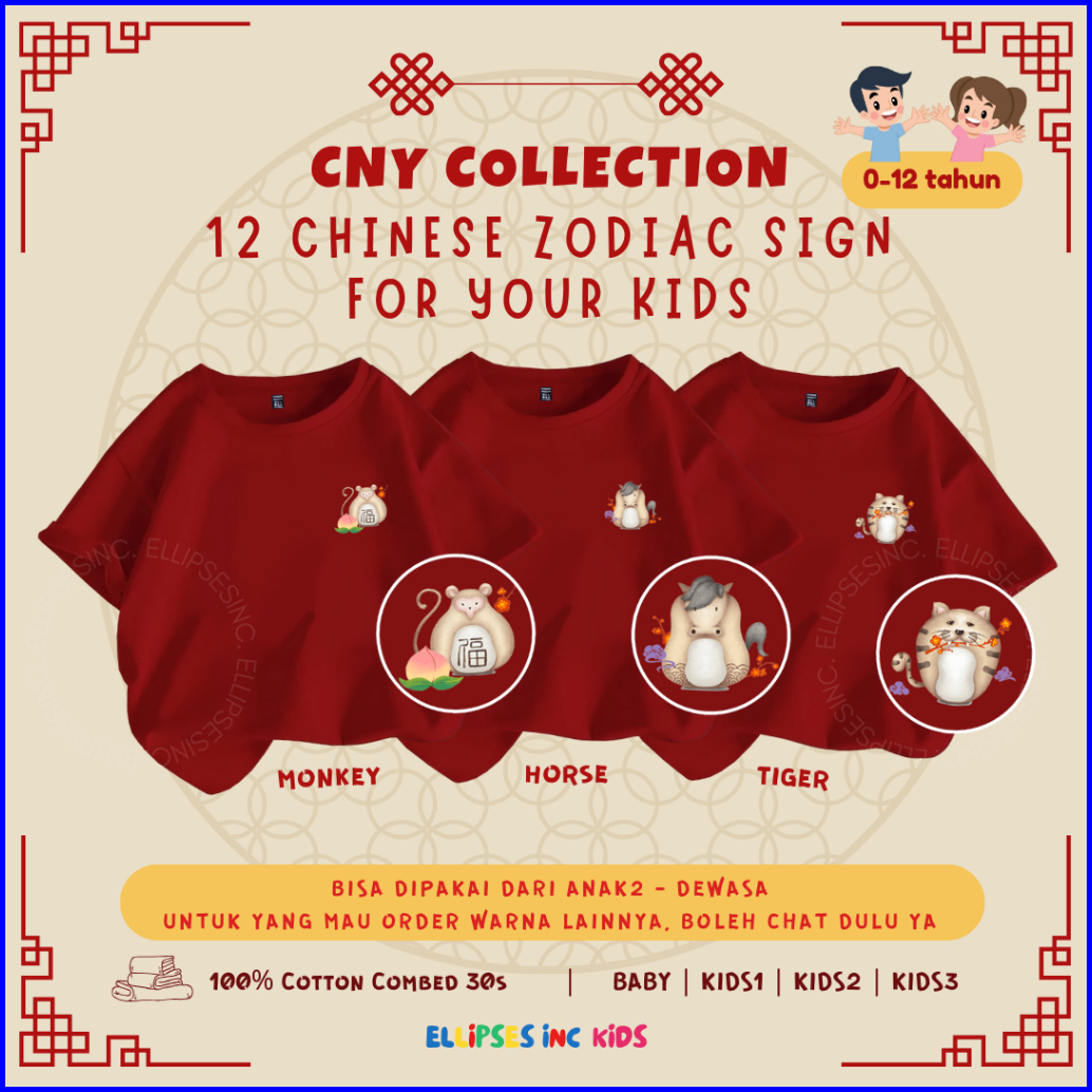 Ellipsesinc Kaos Imlek Cny Sincia Anak Kids Baby 12 Chinese Zodiac Shio Printing Series 7