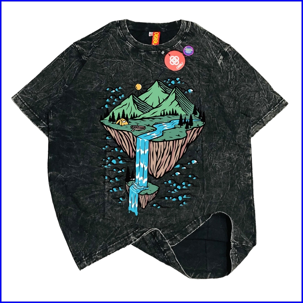 Ossu Tshirt Beauty Mountain Wash Black Grey White Green