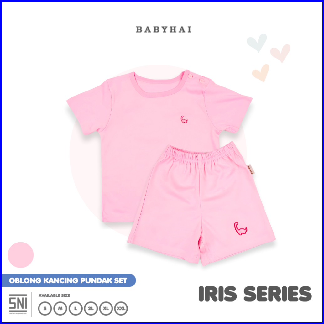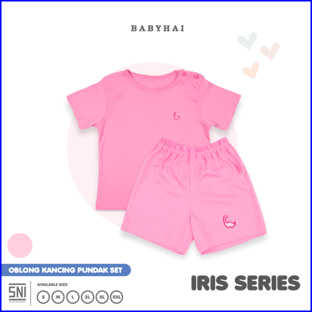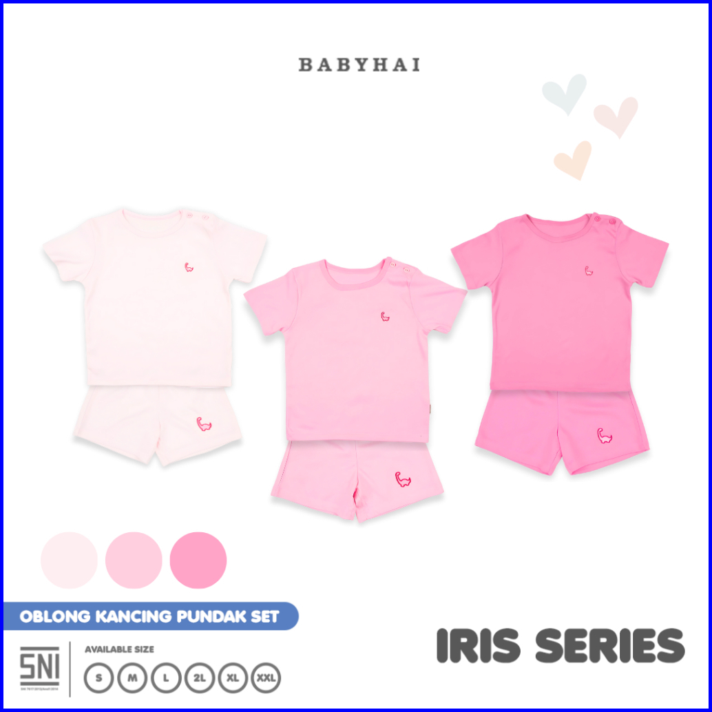 Baby Hai Iris Set - Setelan Kancing Pundak Polos Baju Pendek Celana Pendek - Seri Pink