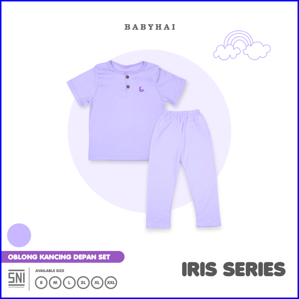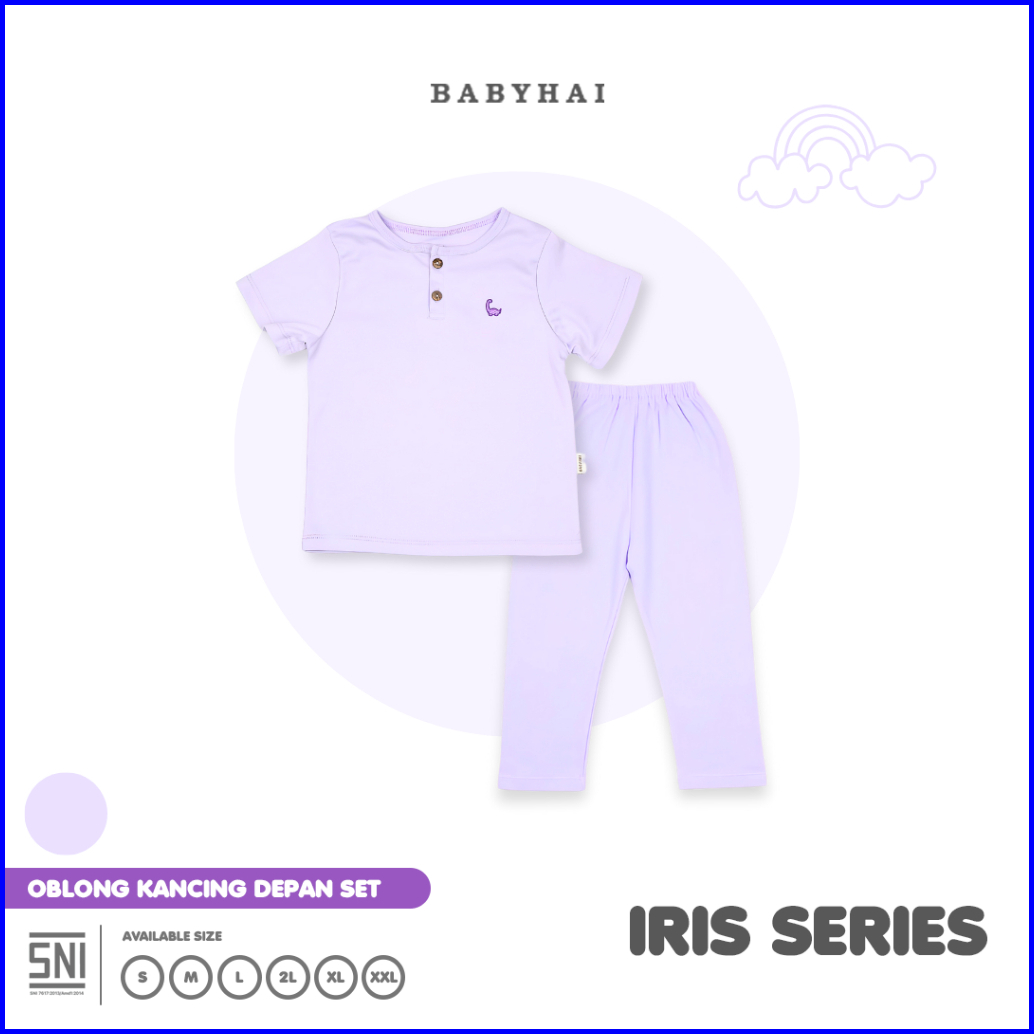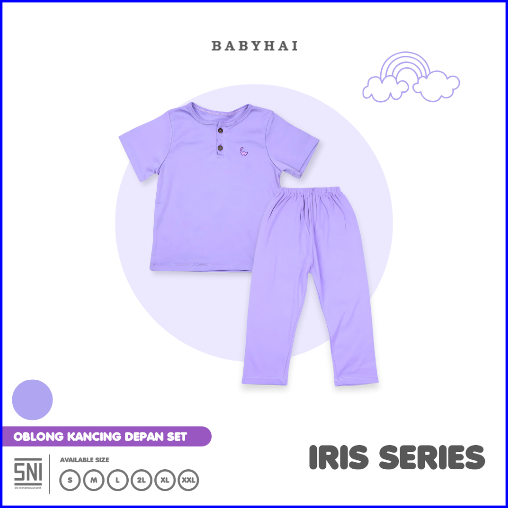 Baby Hai Iris Set - Setelan Kancing Depan Polos Baju Pendek Celana Panjang - Seri Purple