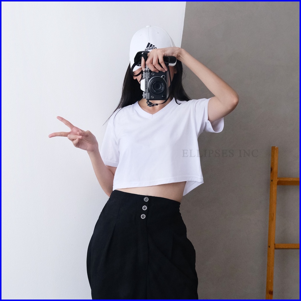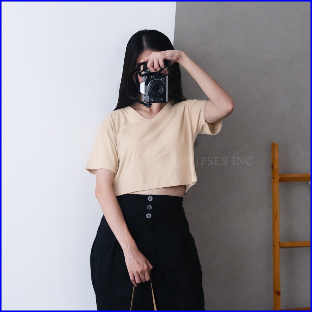 Ellipsesinc Basic Crop Top Vneck