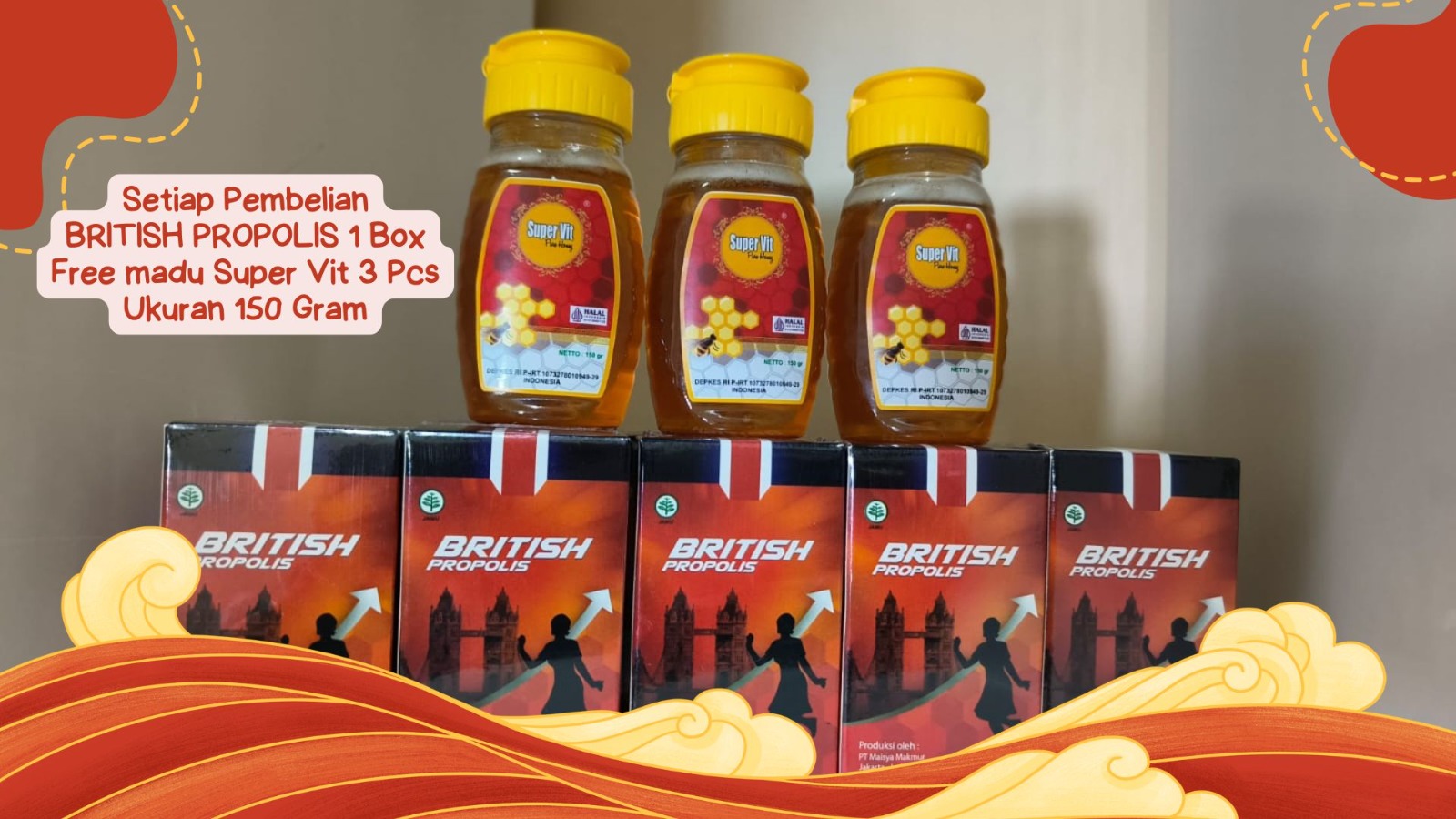 British Propolis Paket 10 Botol Dewasa, FREE MADU SUPERVIT 3 Pcs UKURAN 150 Gr