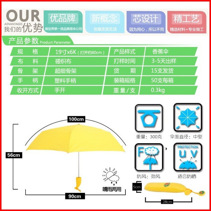 Payung Lipat Mini Cute Bentuk Pisang Banana Umbrella Uv Protection Payung Pisang