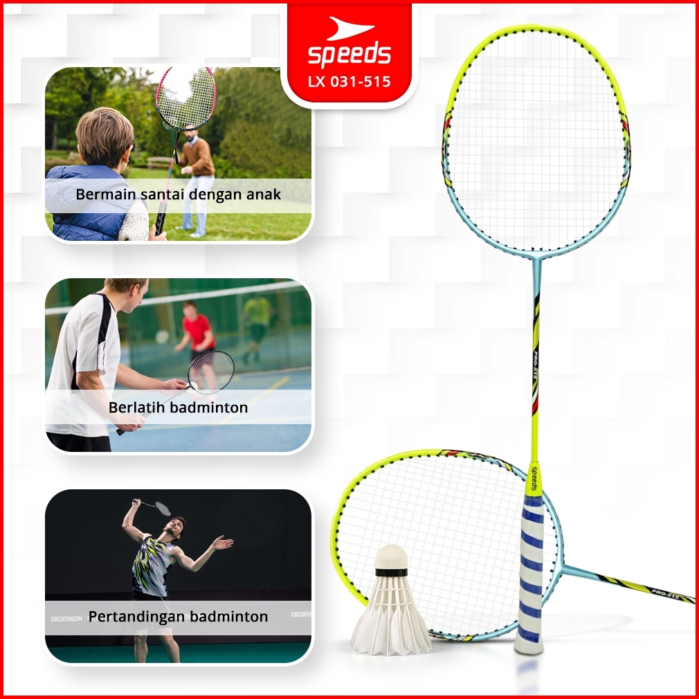 Speeds Raket Badminton Bulu Tangkis Paket Lengkap 1 Set 2pcs Alat Olahraga Berkualitas Original Lx 032-515