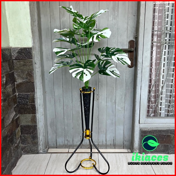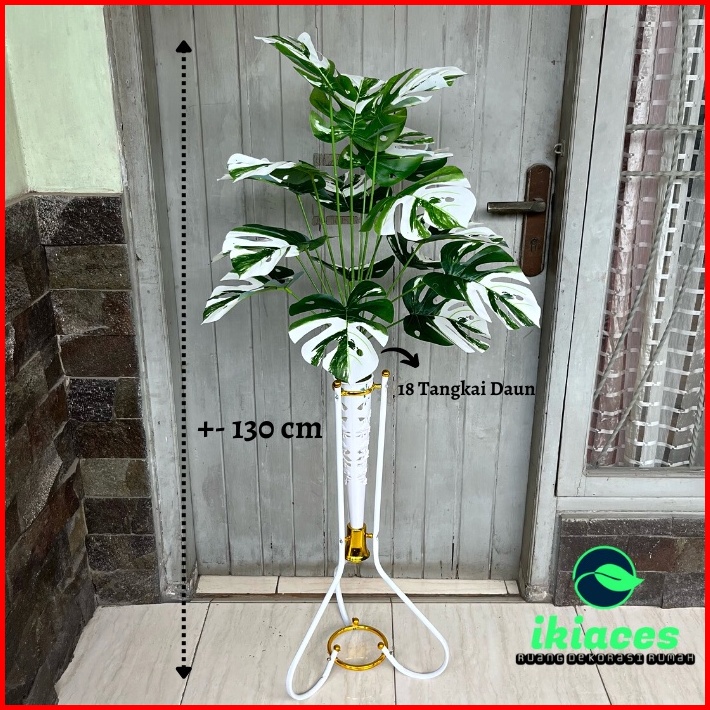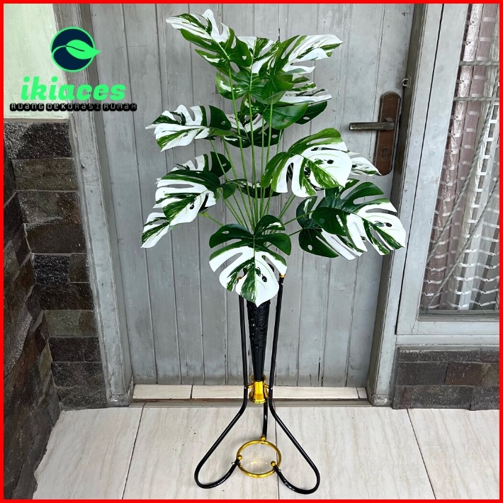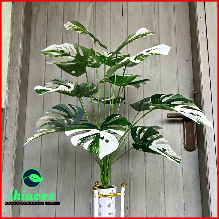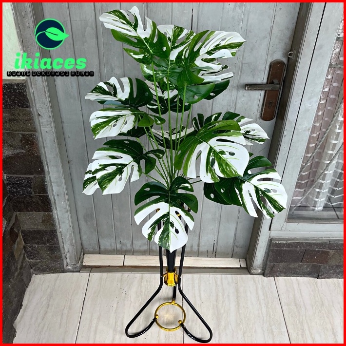 Daun Monstera Corak Putih Daun Plastik Monstera Artificial Vas Standing Besi Bunga Plastik Dekorasi Tanaman Hias Murah