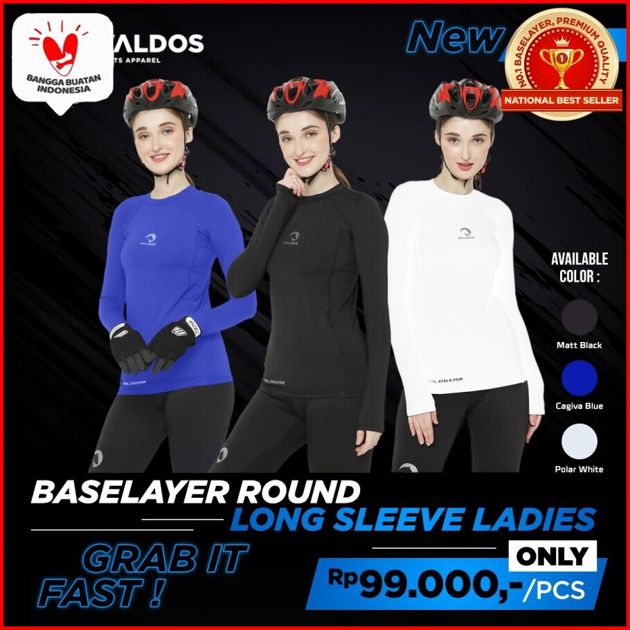 Waldos Baselayer Wanita Long Sleeve Baju Manset Ladies Sepeda Running Diving Basket Futsal Volly Golf Snorkeling Tennis