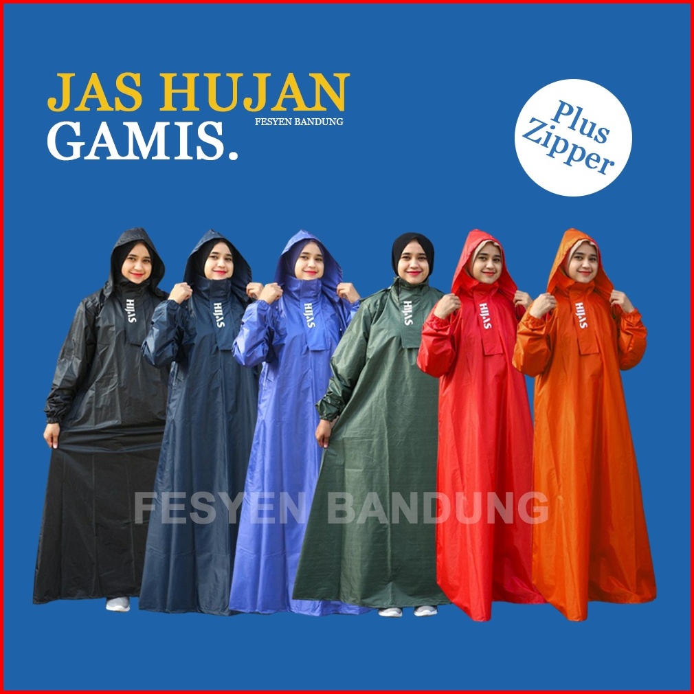Zipper Jas Hujan Gamis Jas Hujan Hijab Jas Hujan Dewasa Wanita Muslimah Jas Hujan Rok - Hijas