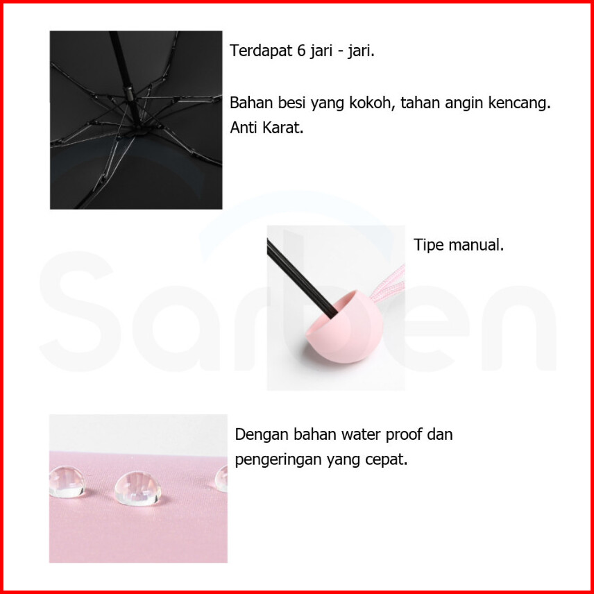 Payung Lipat Anti Sinar Uv Tahan Hujan - Manual - Kotak Capsule - Payung Lipat Manual