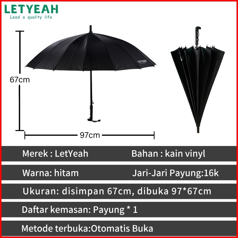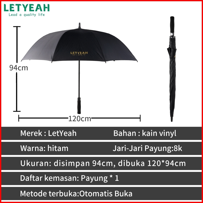 Letyeah Buka Otomatis Payung Golf Besar Diameter 97 108 120cm Large Automatic Premium Golf Umbrella